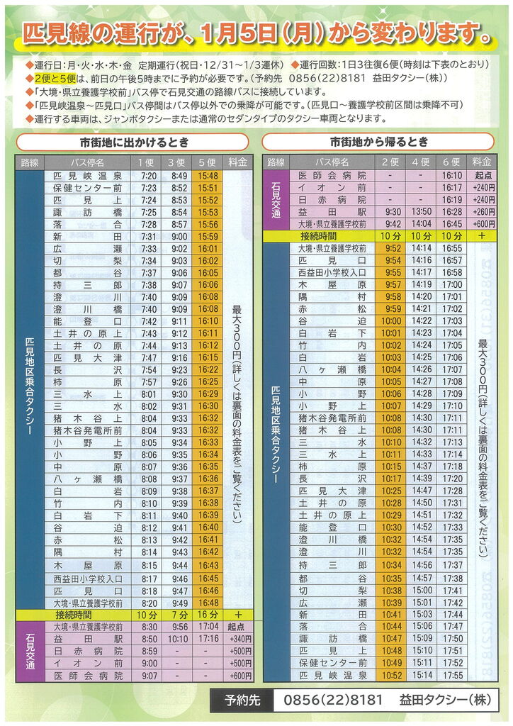 ¡Ú¤ªÃΤ餻¡Û¡Ö¾è¤ê¹ç¤¤¥¿¥¯¥·¡¼É¤¸«Àþ¡×¤Î±¿¹Ô¤¬¡¢1·î5Æü¡Ê·î¡Ë¤«¤éÊѤï¤ê¤Þ¤·¤¿