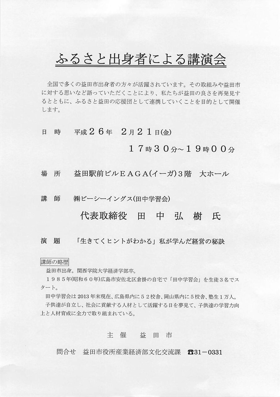 【ご案内】田中学習会社長の講演会
