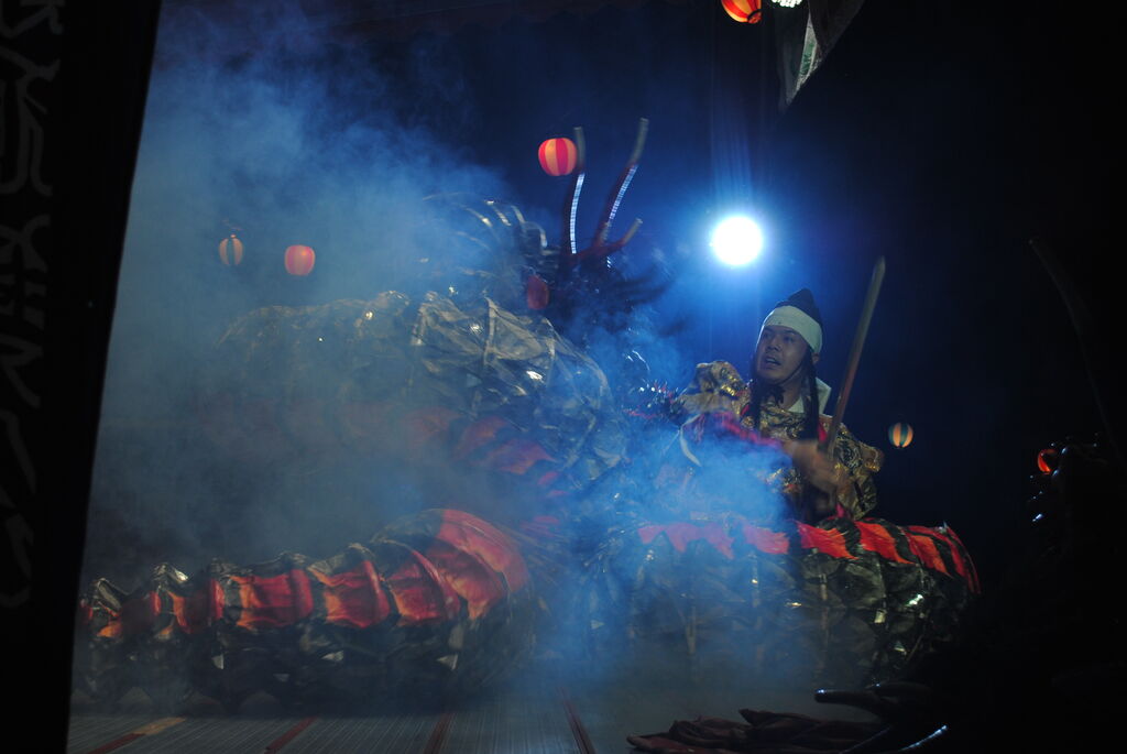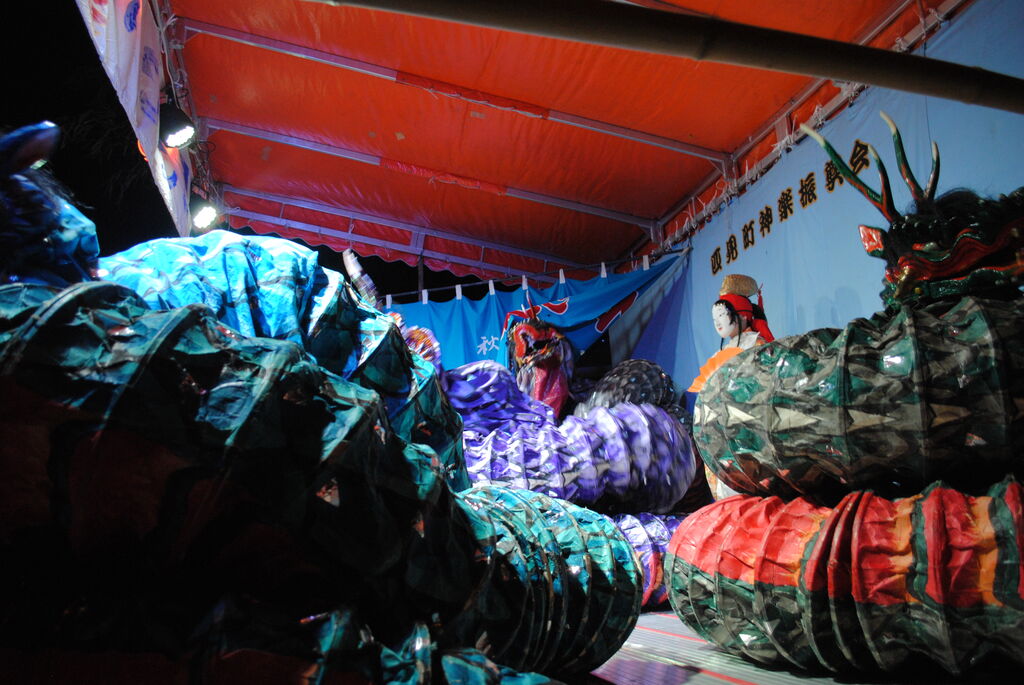 またお堂の上に看板!?なるものを制作。さらに近所の方に頼んで、お堂内の赤いカーテン(なんと呼ぶのでしょうか?)を作ってもらったそうです。