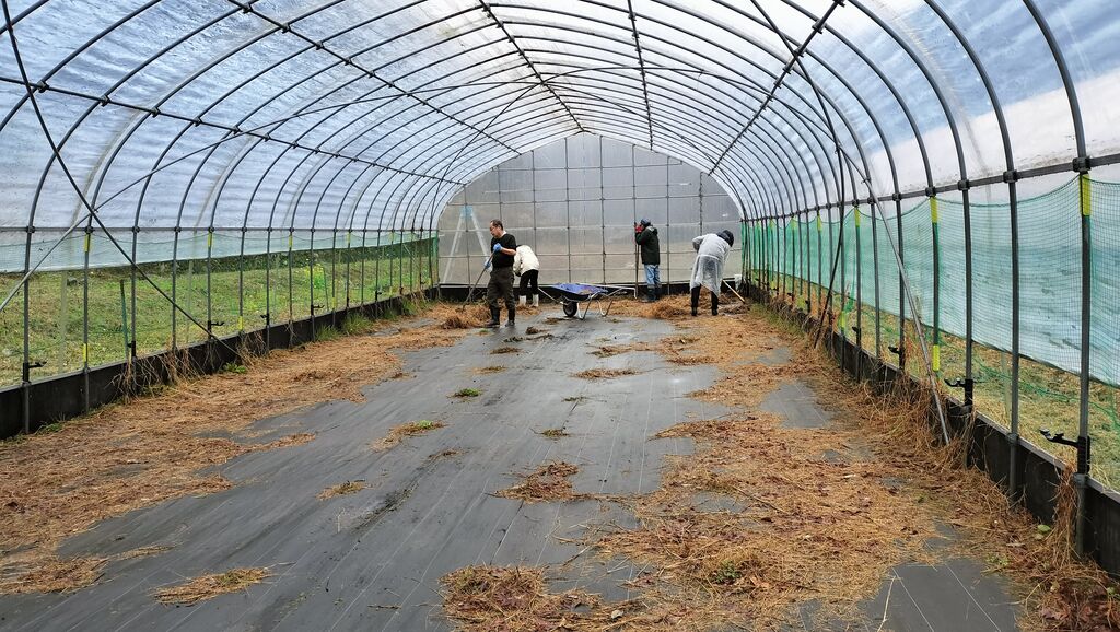 ビニールハウス内にはびこった枯草の除去作業を行いました。