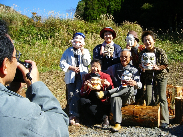 たくさんの神楽面持参で!