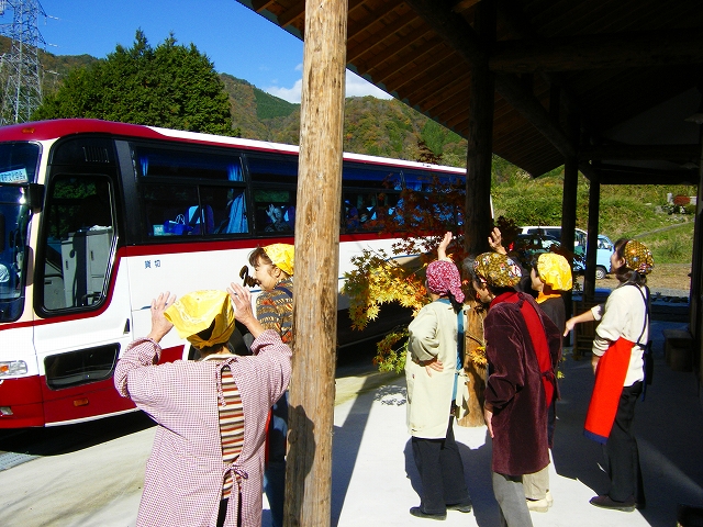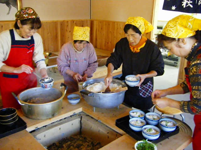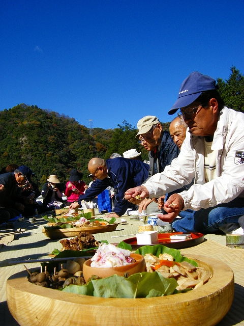 ←萩の会の皆さんが作られる縄文食と匹見の紅葉を目当てに