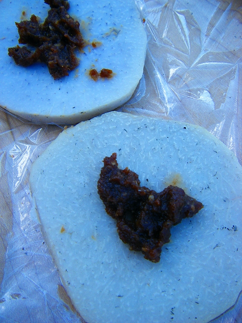 さといもの上に味噌を乗せて食べる料理もありました。