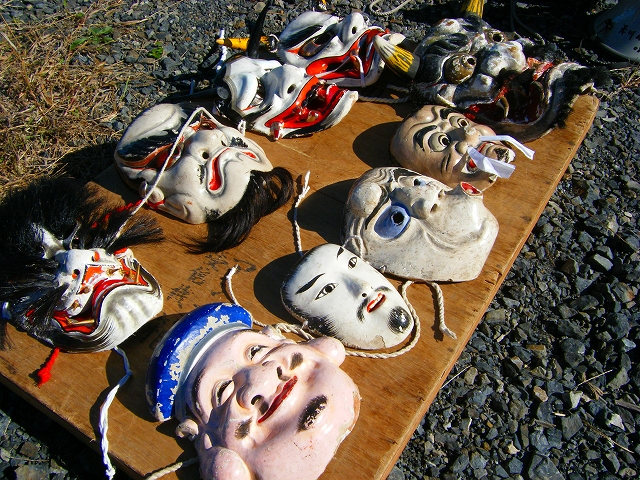 せっかくの機会だからと神楽面を持って