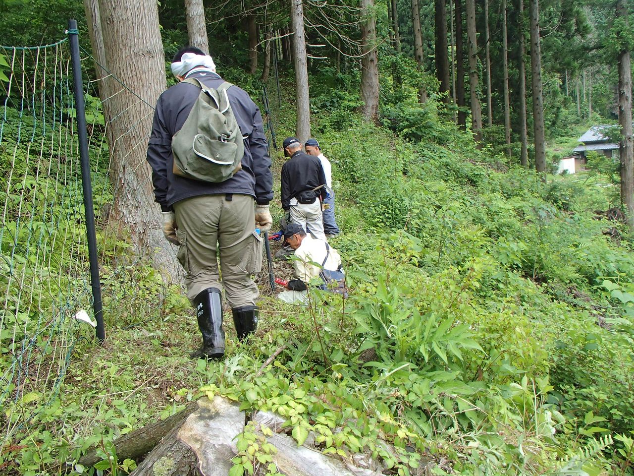 今回、私も作業のお手伝いをさせていただいたのですが険しい山肌に設置された電気牧柵の下の