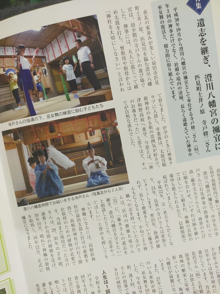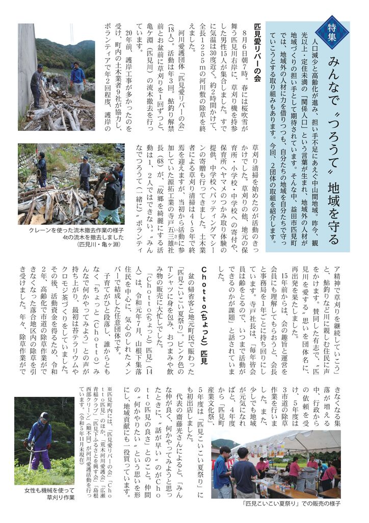 匹見上・下・道川の3公民館職員さんに記事執筆・写真提供のご協力をいただき、今号も無事完成・配布の運びとなりました。有難うございました。特集ページは、石橋が取材・執筆・撮影を担当させていただきました。