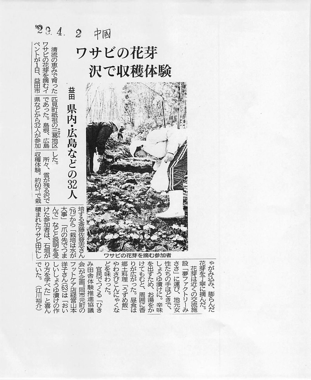 例年3月最終土曜日に開催している「わさびの花芽摘み体験」は、