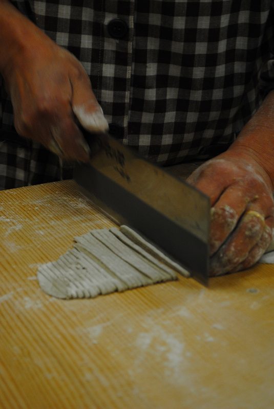 そばが切られていきます。